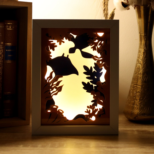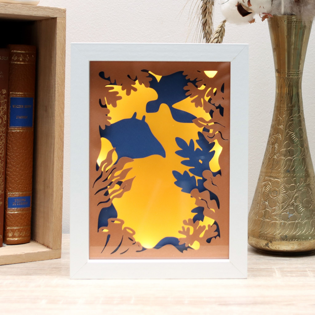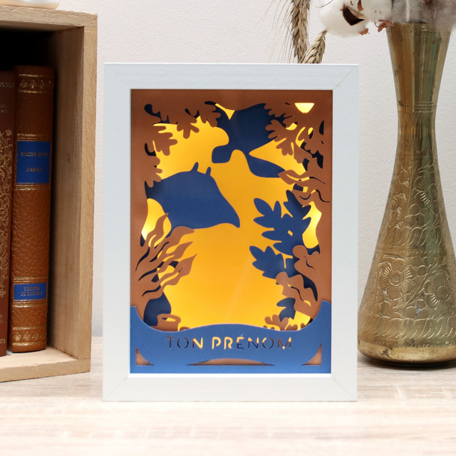 Un cadre blanc et une lumière orangée pour une veilleuse peps!